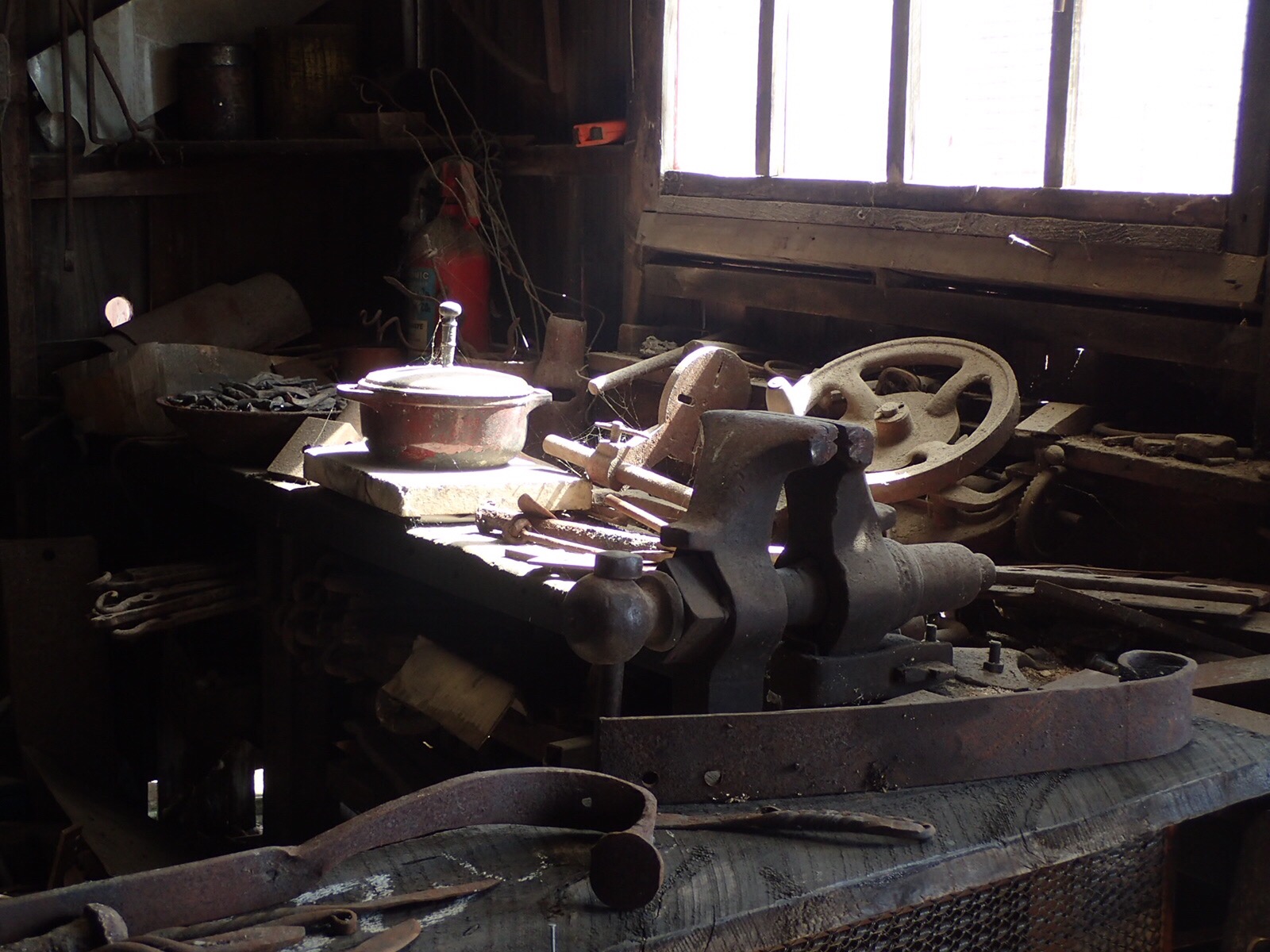Eine freundliche, beleibte Dame mittleren Alters begrüßt uns mit schelmischem Grinsen, auch sie trägt eine Uniform, die sie als Mitarbeiterin der Eisenbahnlinie ausweist. Mit einem verschmitzten Lächeln führt sie uns in einen der Schuppen, in dem ein leicht fischig-ranziger Geruch hängt. Ein paar Momente dauert es, bis die Augen sich an das dimmrige Licht gewöhnt haben. Es muss sich um eine alte Schmiede handeln, überall liegt Werzeug herum und ein Schmiedeofen, dessen beste Jahre auch schon vorbei zu sein scheinen, wartet an der Wand auf bessere Zeiten. Die uniformierte Frau geleitet uns in den hintersten Winkel des Raumes und was ich dort erblickte erklärte mit einem Mal die freudige Erregung der Zugbediensteten und den würzigen Geruch: ein Pinguinpärchen, das den hintersten Winkel dieser Schmiede als Nistplatz auserkoren hat. Nur schemenhaft erkennt man ihre Umrisse im Dunkeln, wir wollen auch ihre Privatsphäre respektieren und halten entsprechenden Abstand, doch sie ist eindeutig zu erkennen (und zu riechen).