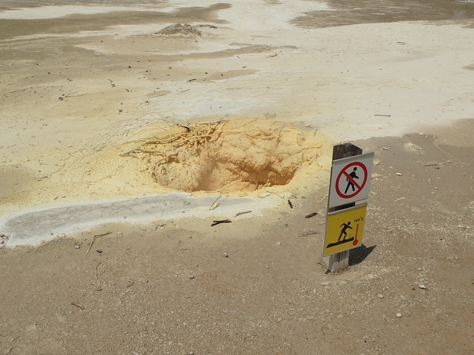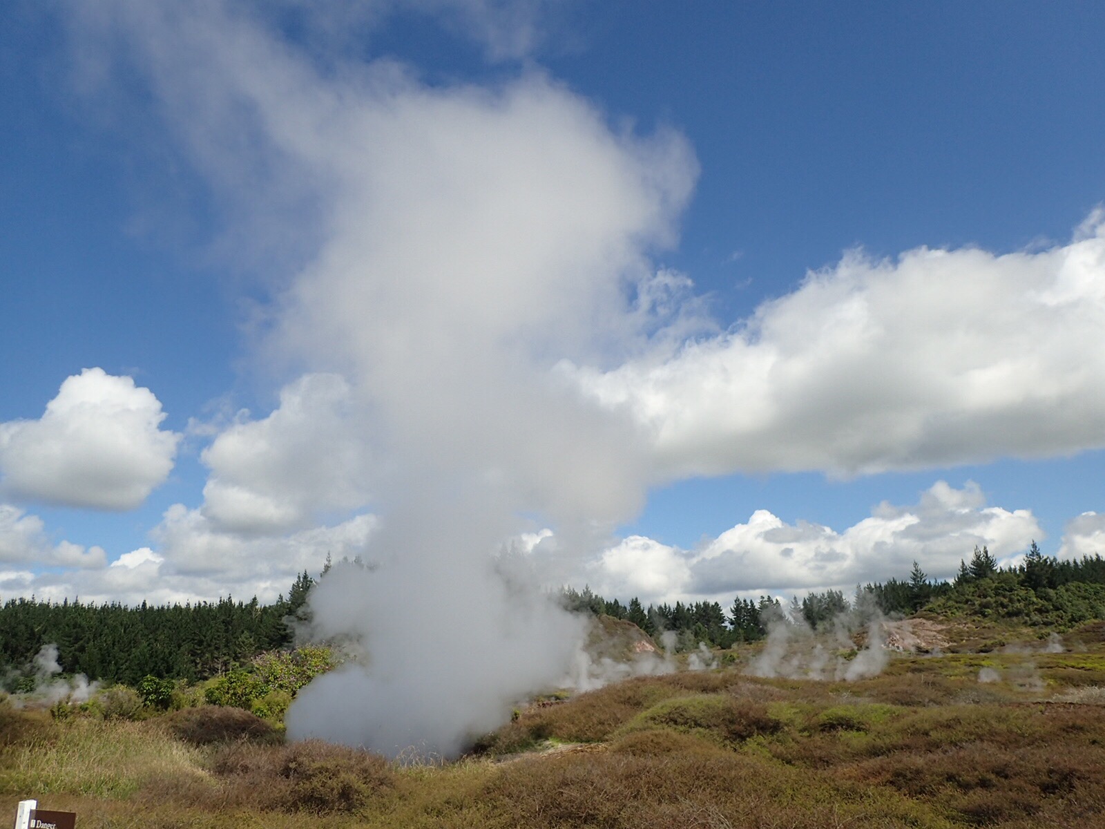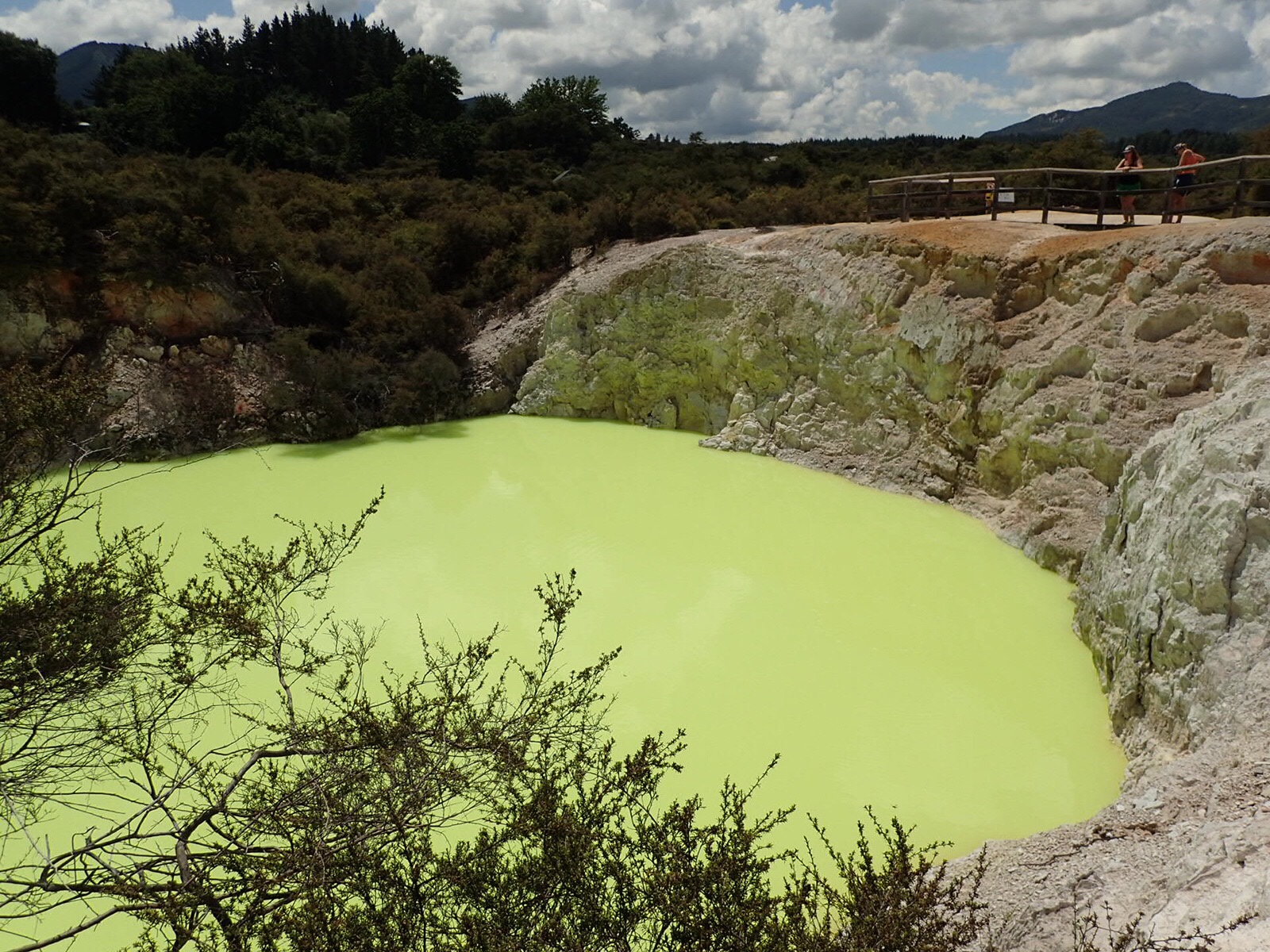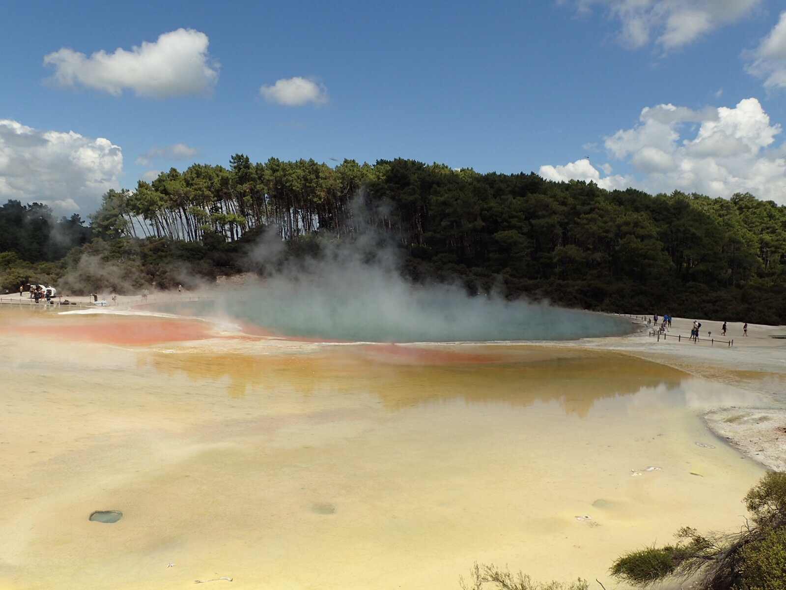 Als nächstes führte unser Weg durch die Geothermalgebiete rund um Rotorua. Hier ist die Erdkruste so dünn, dass es an der Oberfläche teilweise 100 Grad hat. Spazierwege führen an dampfenden Erdlöchern und blubbernden Tümpeln vorbei, an kochend heißen Seen, knallig gelbgrün oder in feurigen Rottönen. Stinkender, heißer Dampf quillt aus Erdlöchern – hier bekommt man einen Eindruck davon, wie es auf der Erde vor Millionen von Jahren zugegangen sein mag.